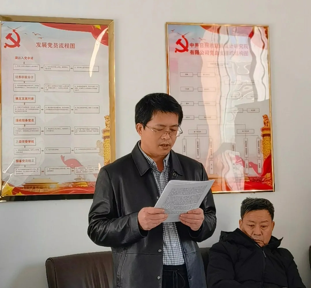 2021年1月12日, 日照市建筑設計研究院有限公司第一黨支部在黨員活動室召開新一期納新大會,會議由第一黨支部書記王慶主持,黨總支副書記厲夫俊、第一黨支部全體黨員及入黨申請人參加了會議。